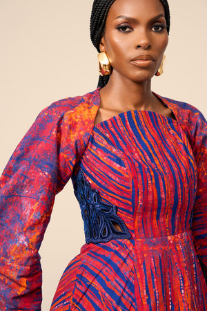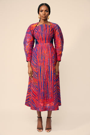 Dome neckline fit and flare dress with hand embroidery insert