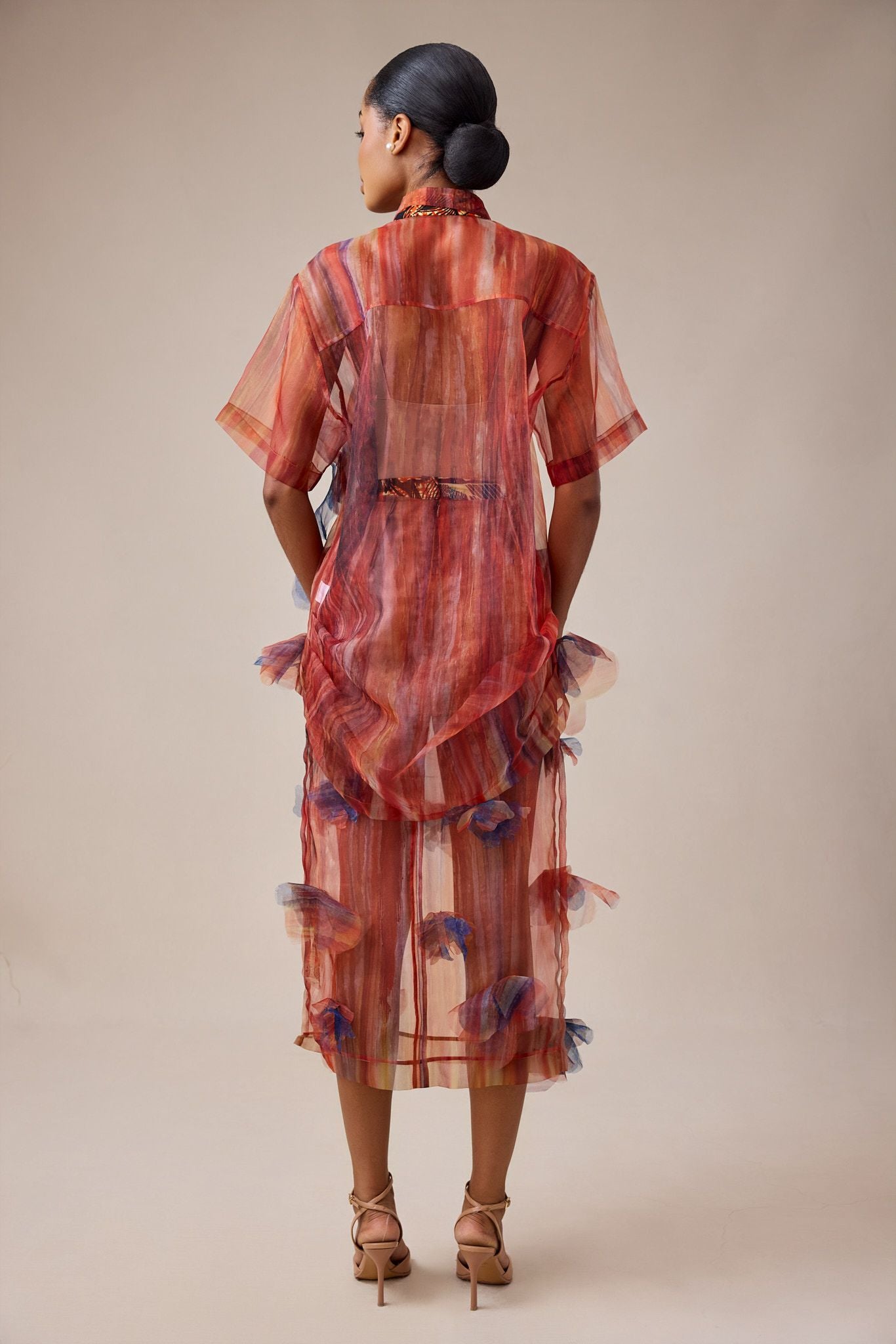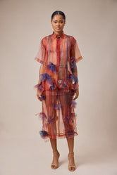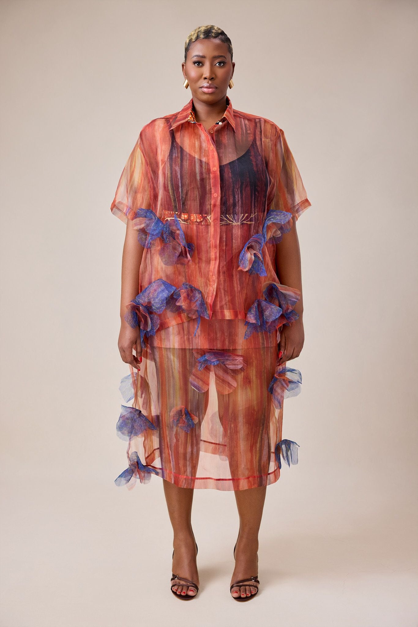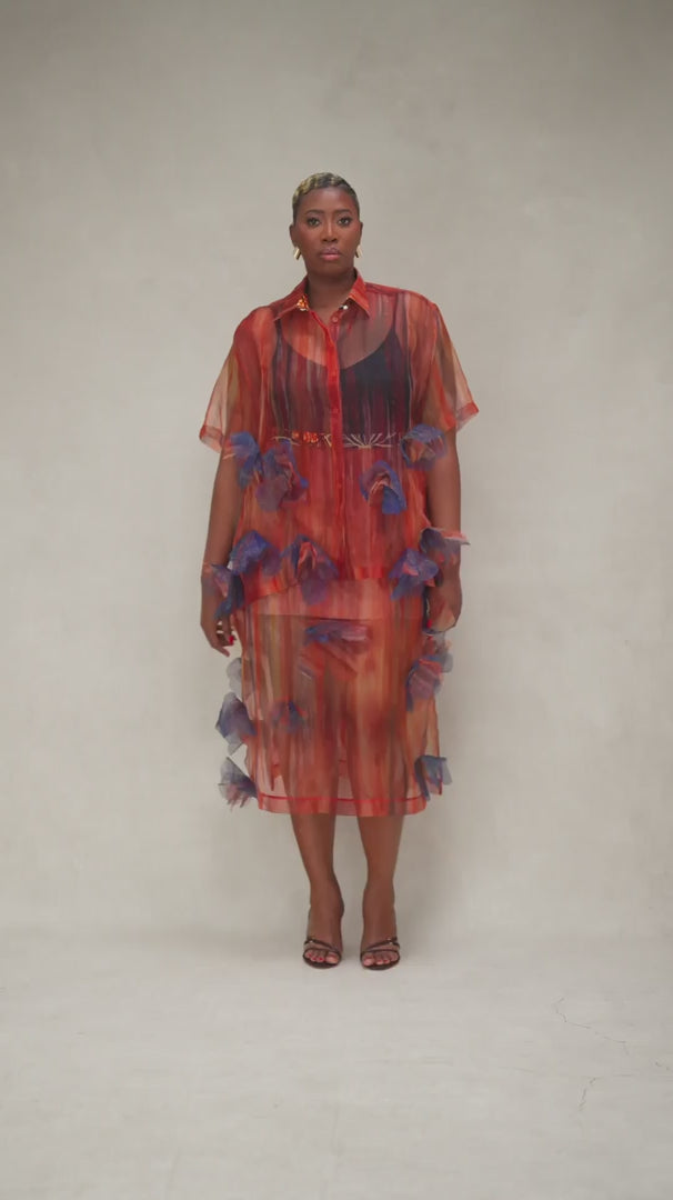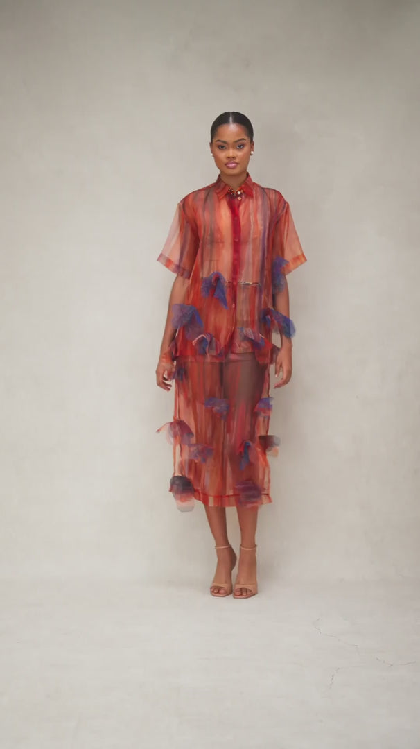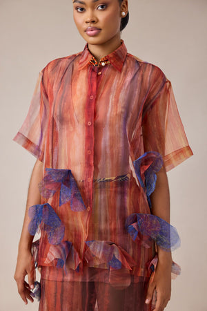 SHORT SLEEVE ORGANZA PETAL APPLIQUE SHIRT