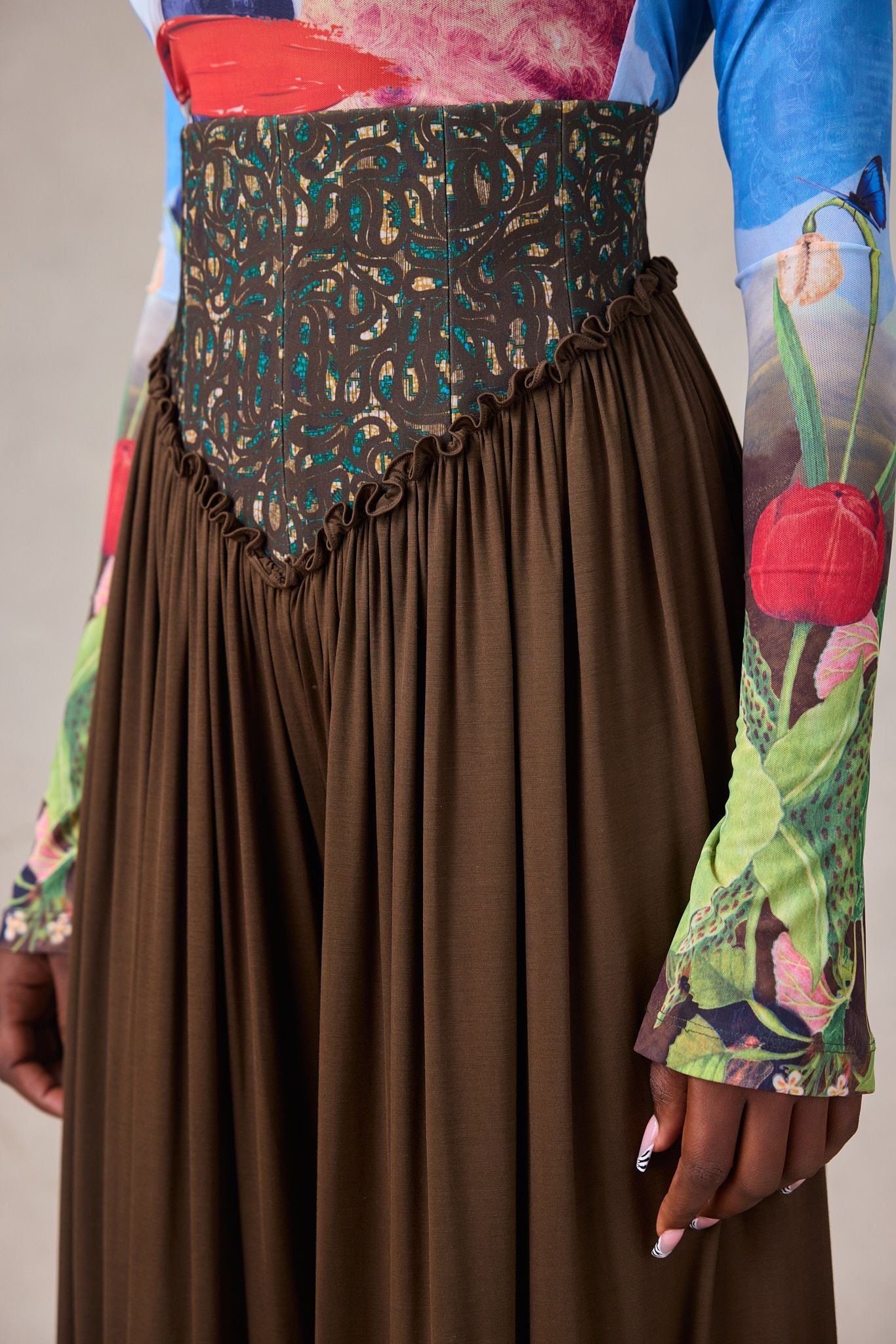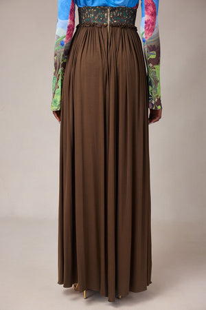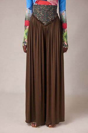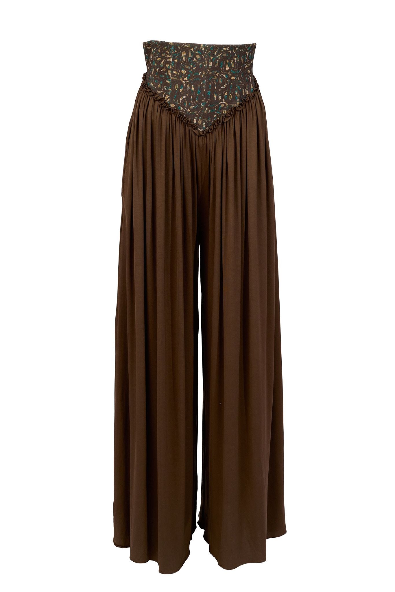 OLIVE KNIT WIDE LEG PANTS WITH WAX PRINT BUILT IN CORSET