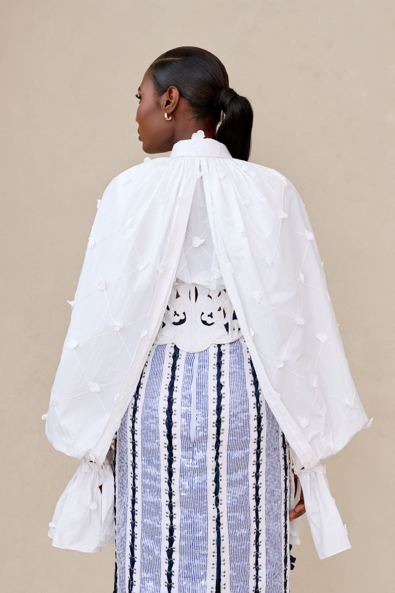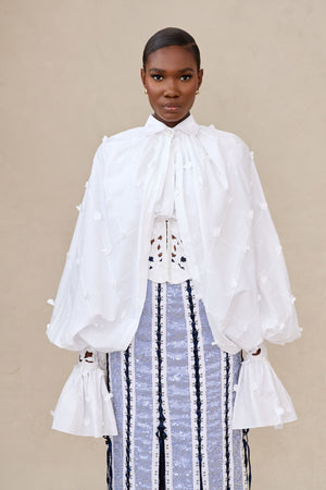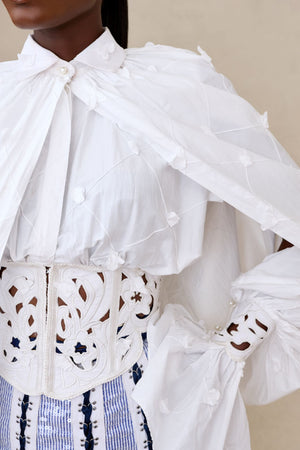 LONG CAPE SLEEVE WHITE CORSETTED SHIRT