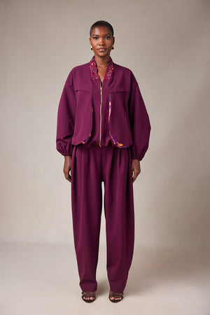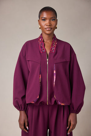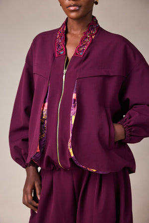 CONTRAST DETAIL BOMBER JACKER WITH CUT OUT BACK