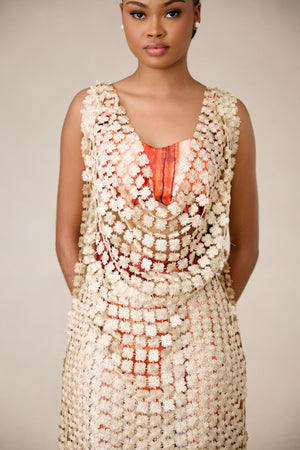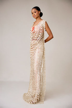 METALLIC LACE MAXI BLOUSE
