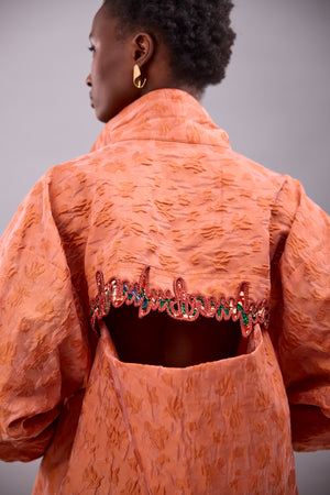 OVERSIZED STATEMENT BOMBER JACKET WITH CUT OUT BACK DETAIL