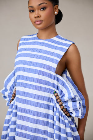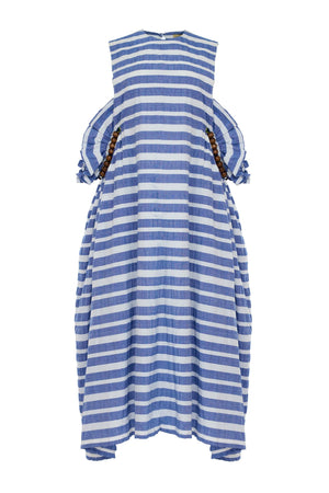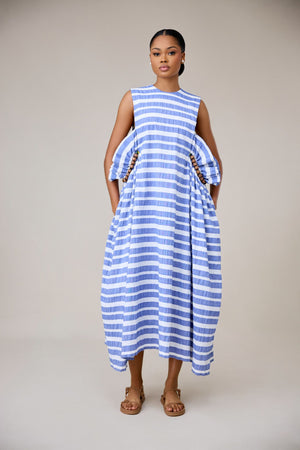 SLEEVELESS SHIFT MIDI DRESS WITH ADJUSTABLE SIDES AND HAND-EMBROIDERED INSERTS