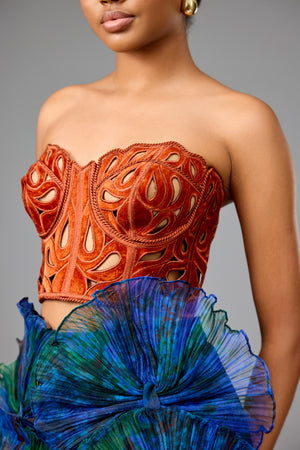 SIGNATURE HAND-EMBROIDERED STENCIL BUSTIER