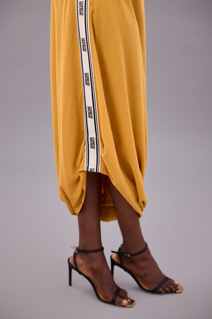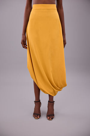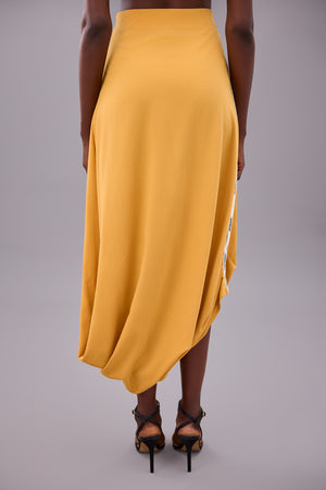 ASYMMETRICAL DRAPE SKIRT WITH CHRISTIE BROWN TAPE DETAIL