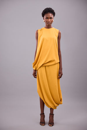 DRAPED ASYMMETRICAL BLOUSE WITH TAPE DETAIL
