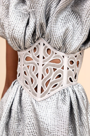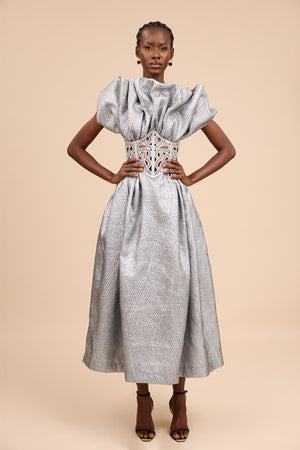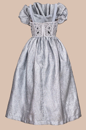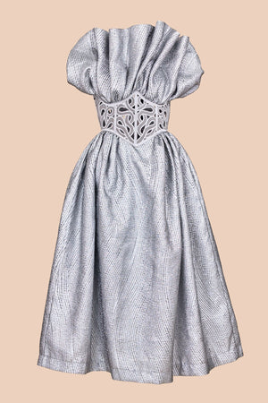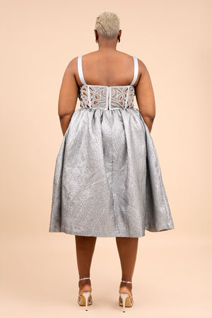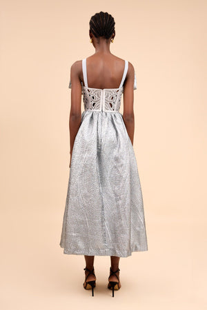 ORGANZA FIT AND FLARE DRESS WITH BUILT-IN HAND-EMBROIDERED CORSET
