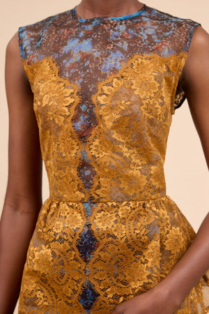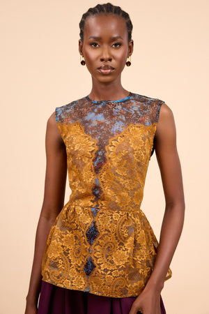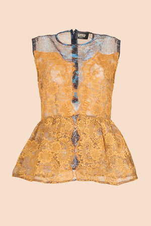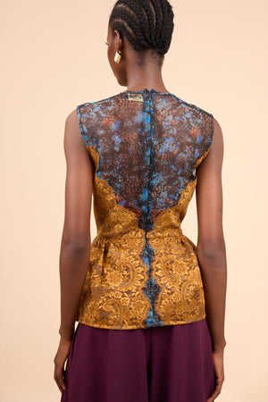 SLEEVELESS DOME SHAPED ORGANZA BLOUSE WITH LACE DETAIL