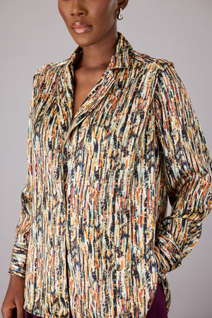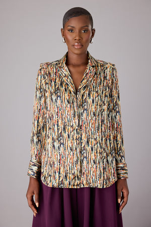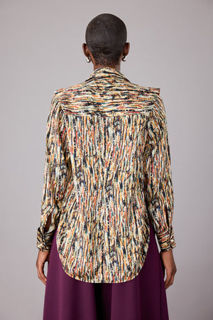 SATIN MULTICOLOUR PRINT BLOUSE WITH PEARL CLOSURE
