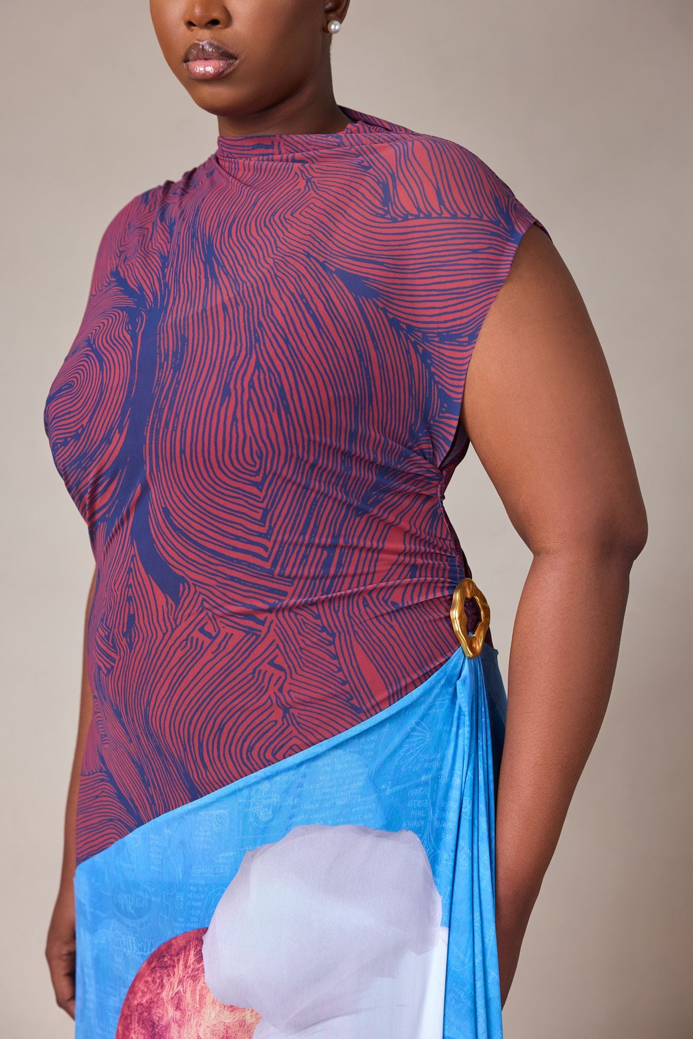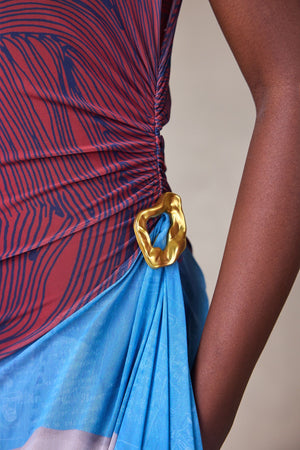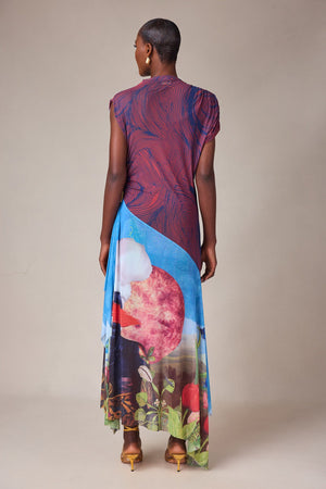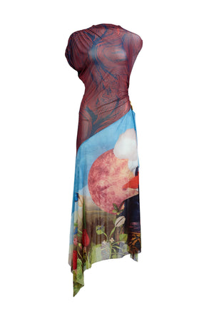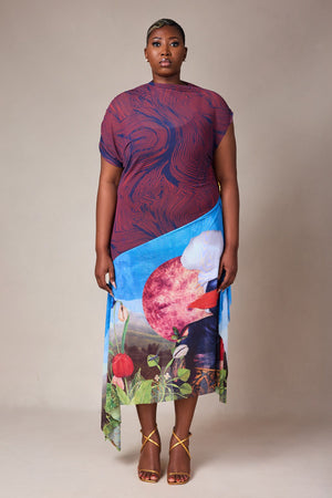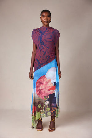 PRINTED TULLE DRESS WITH CONTRAST AFROSCOPE PRINT