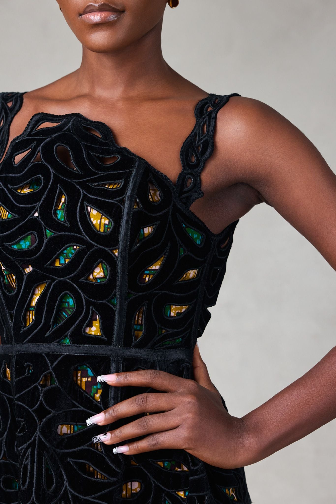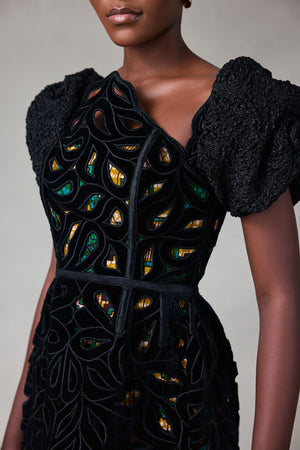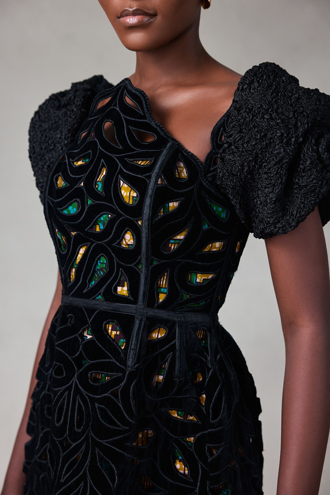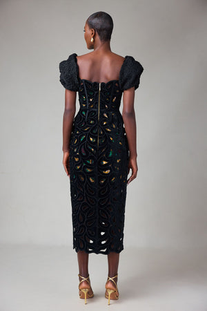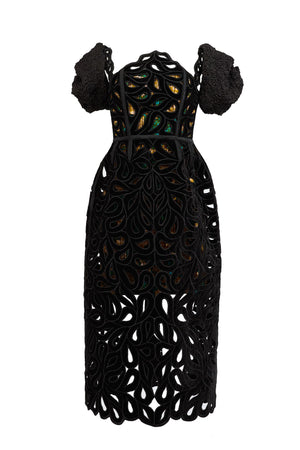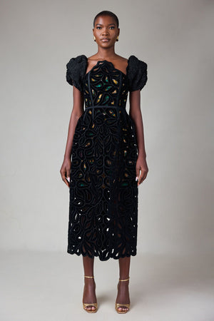 HAND EMBROIDERED MIDI DRESS WITH DETACHABLE SLEEVES