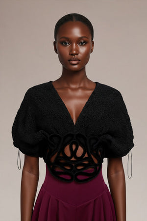 EXTENDED SLEEVE TEXTURED BLOUSED WITH ROPE DETAIL