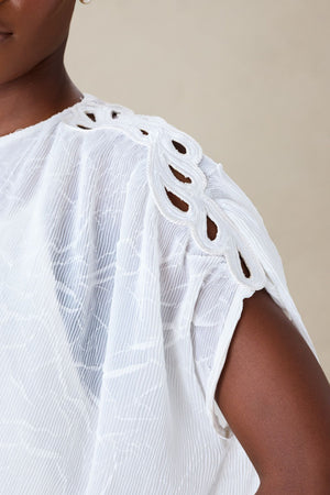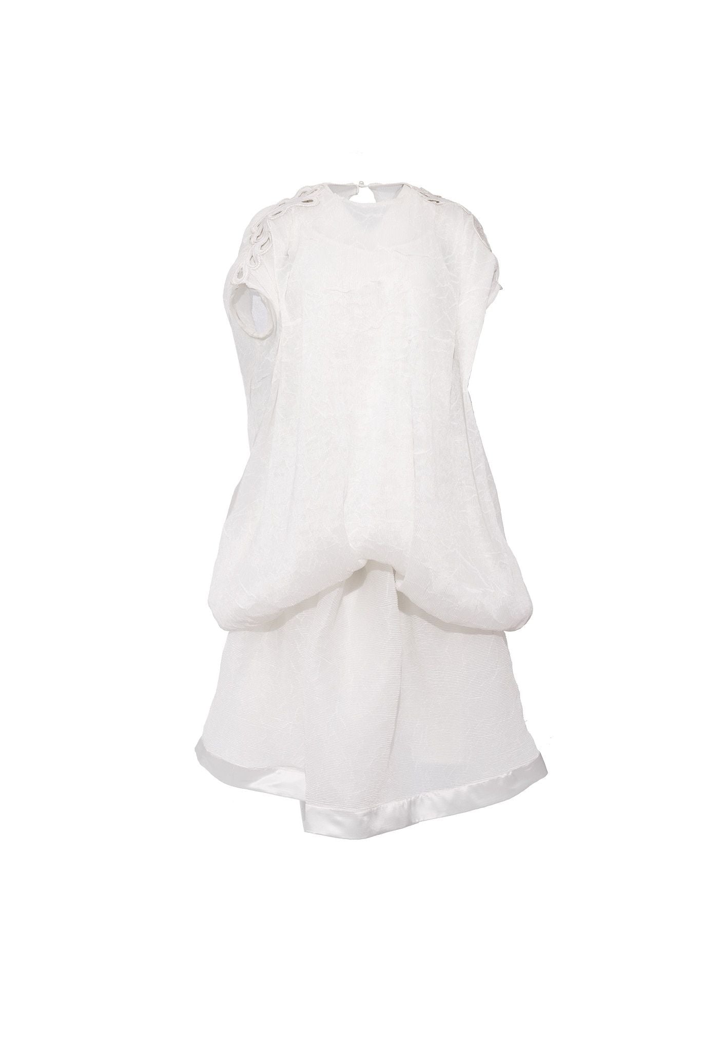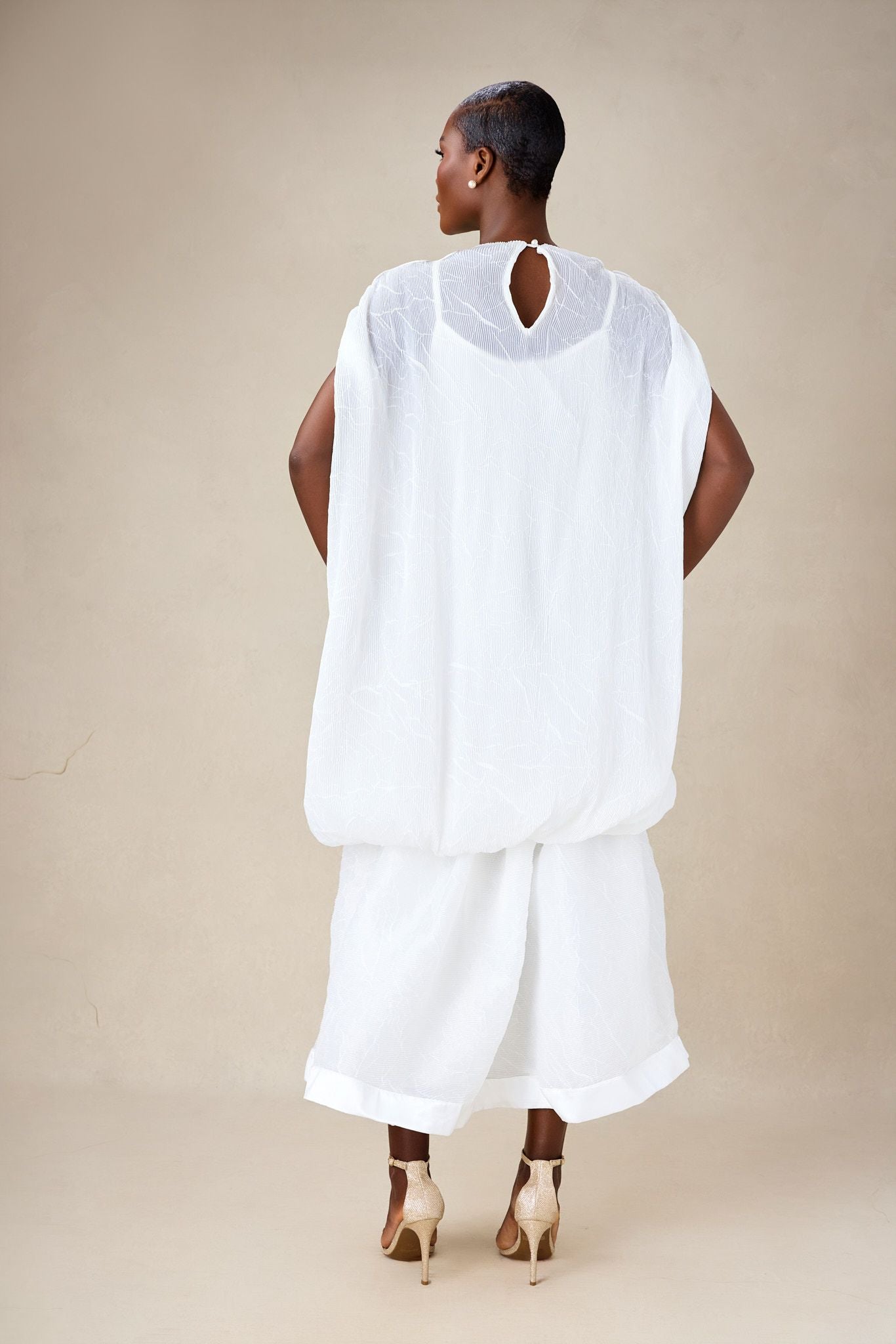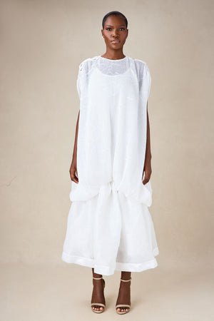VOLUMINOUS MIDI CRINKLE DRESS WITH HAND-EMBROIDERED DETAIL