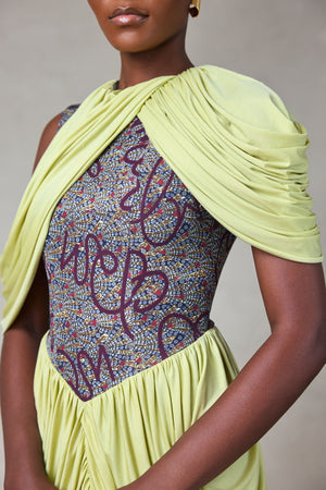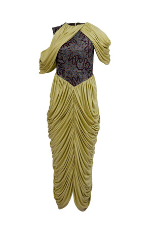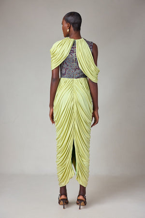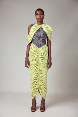 MIDI DRAPED DRESS WITH PRINT DETAIL