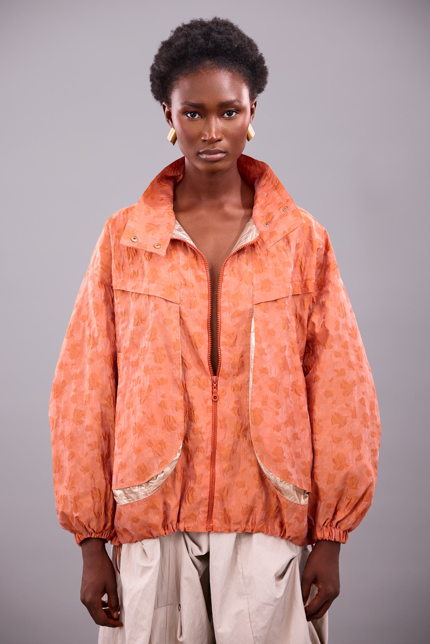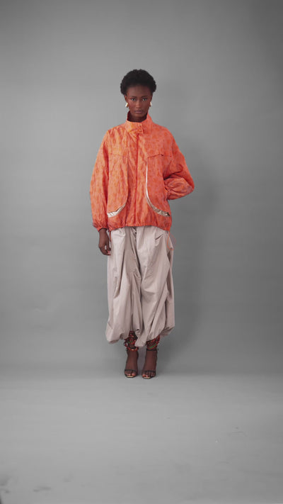 OVERSIZED STATEMENT BOMBER JACKET WITH CUT OUT BACK DETAIL