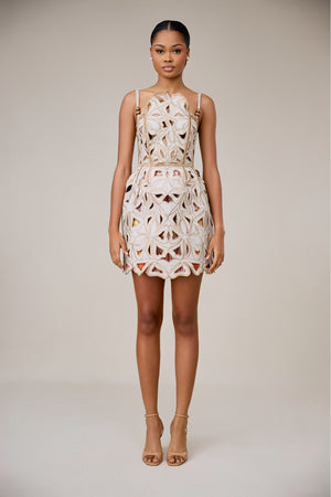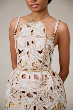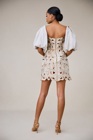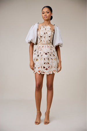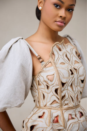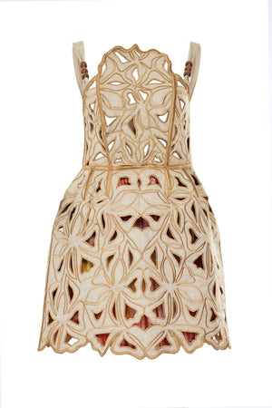 MINI LINEN HAND EMBROIDERED DRESS WITH DETACHABLE SLEEVES