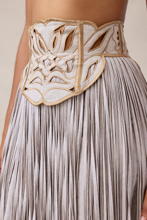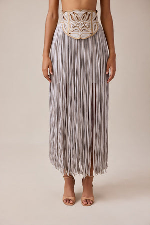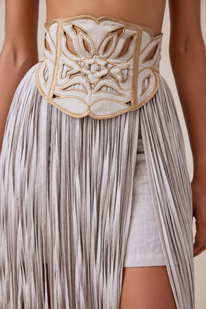 MAXI STRAND SKIRT WITH BUILT-IN HAND EMBROIDERED CORSET