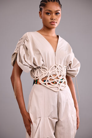 A STRUCTURED BLOUSE WITH ROPE WAIST DETAIL