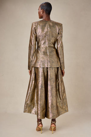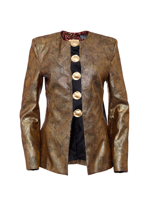 LONG SLEEVED GOLD BLAZER WITH BRASS BUTTONS