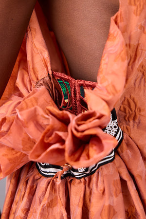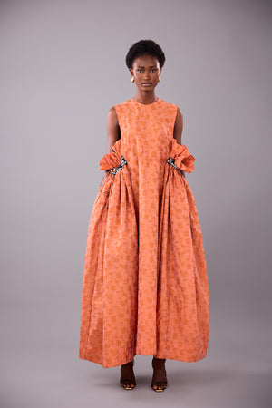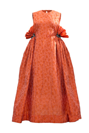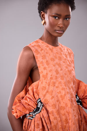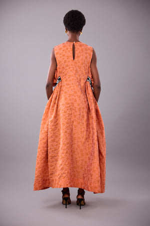 SLEEVELESS SHIFT MIDI DRESS WITH ADJUSTABLE SIDES AND HAND-EMBROIDERED INSERTS