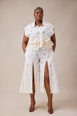 COTTON LACE CULOTTE WITH FRONT SLITS
