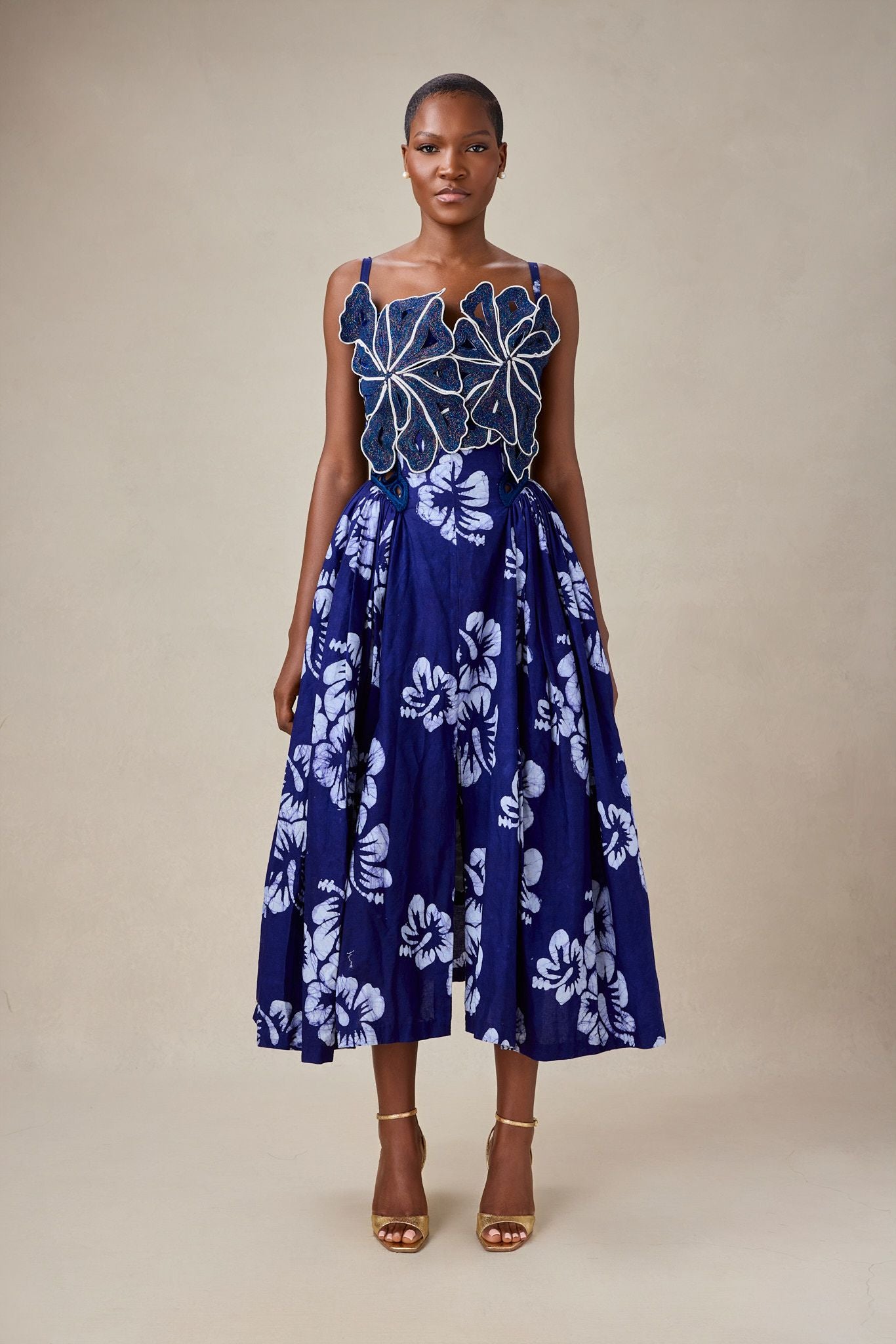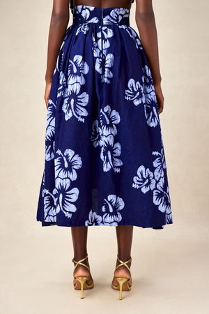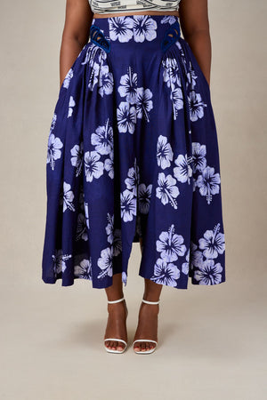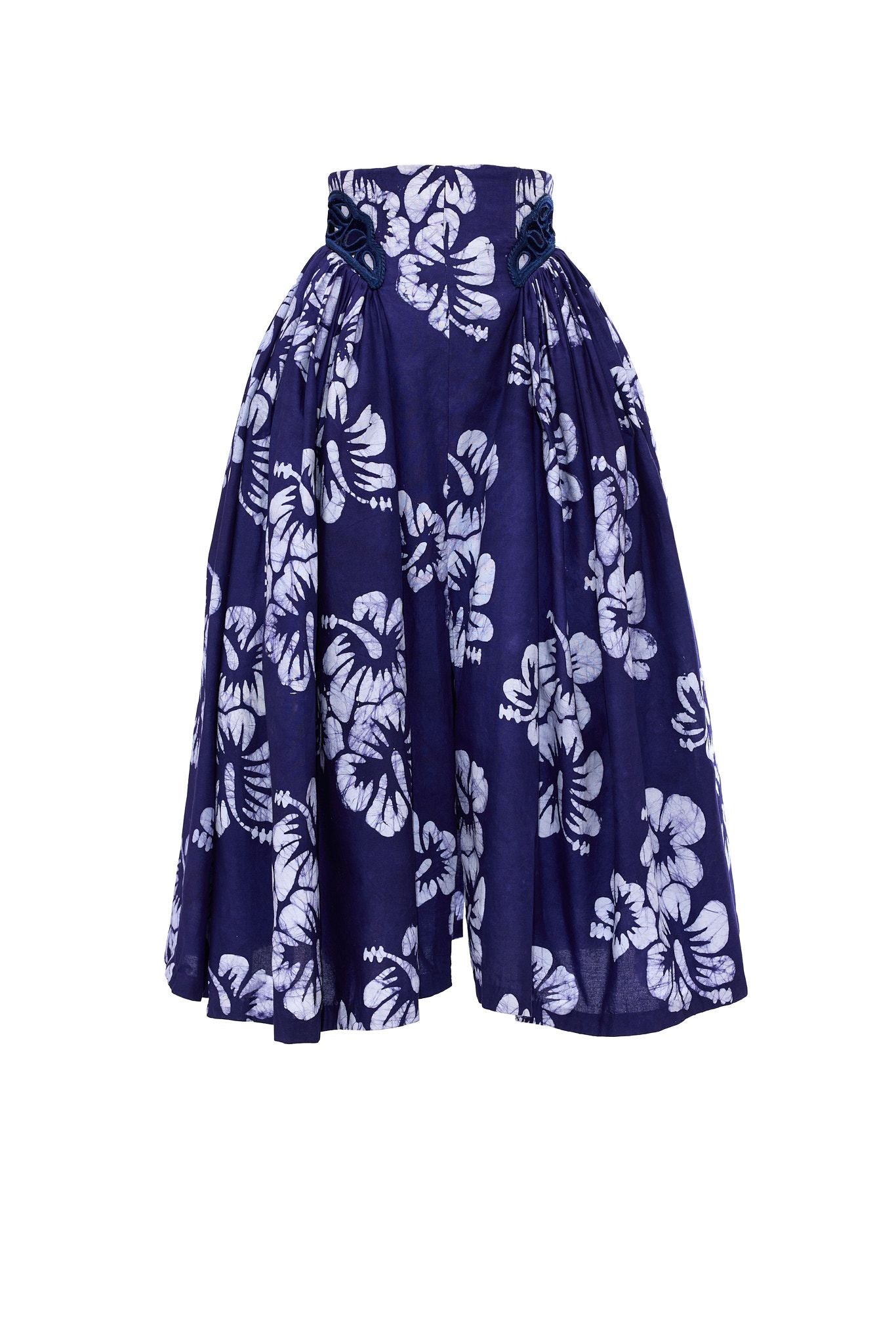 HIGH-WAISTED BATIK SKIRT WITH HAND-EMBROIDERED CUT-OUT DETAIL AT THE WAIST