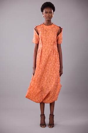STRUCTURED SHOULDER CUTOUT MIDI SHIFT DRESS