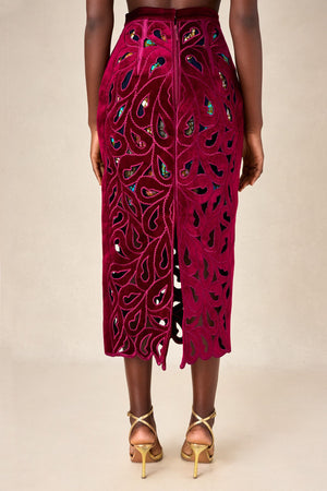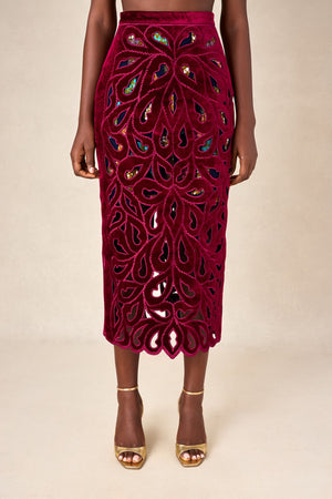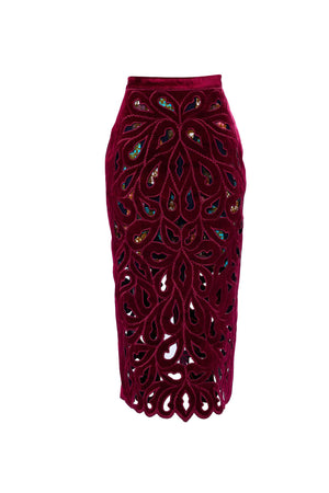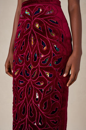 MIDI VELVET HAND-EMBROIDERED SKIRT